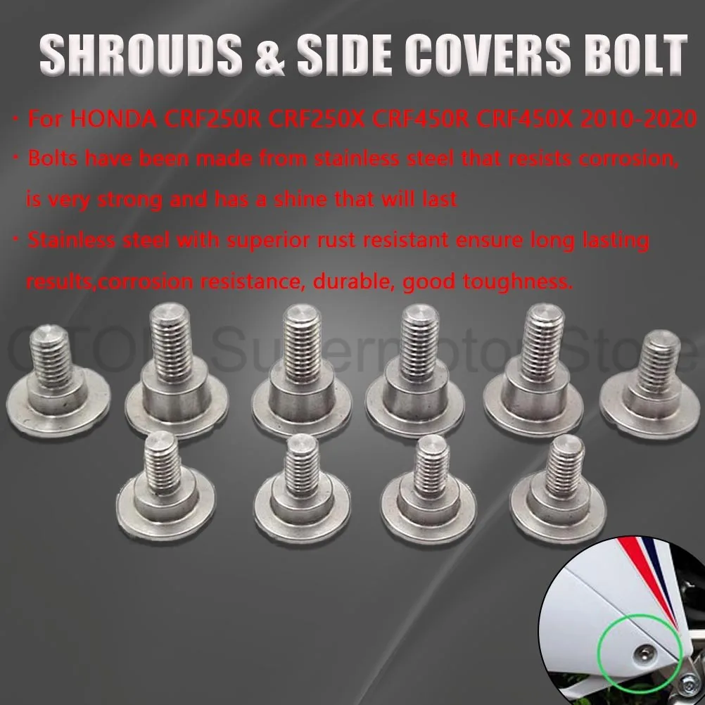 10 conjuntos de parafusos de aço inoxidável prateado com tampa de plástico e clipes tipo U com porca M6 6mm M5 5mm para motocicleta scooter ATV ciclomotor
