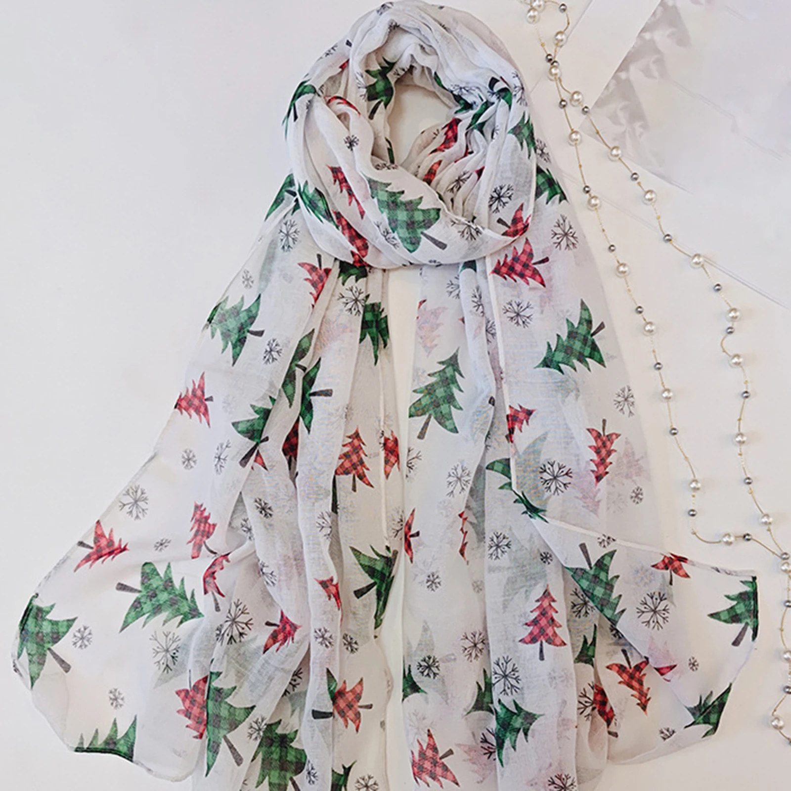 HEZIOWYUN Lenço de Natal para mulheres leve e macio floco de neve xadrez árvore de Natal estampado xale cachecol envoltório