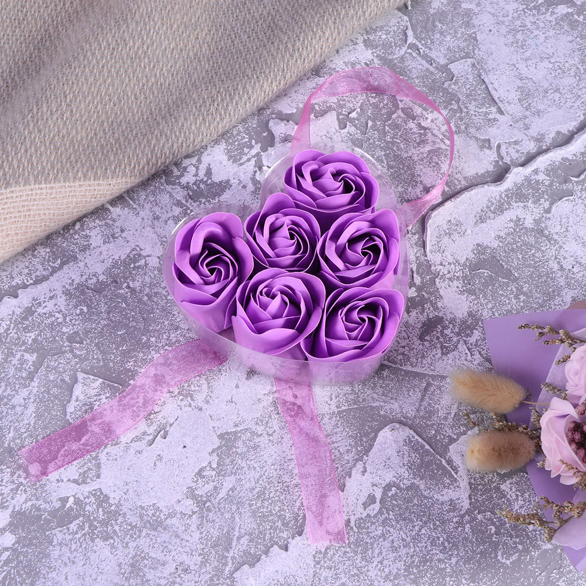 Caixa de presente com 6 rosas de sabonete em formato de coração, cor roxa, para o Dia dos Namorados, aniversário, presente para esposa, namorada, professora, casamento