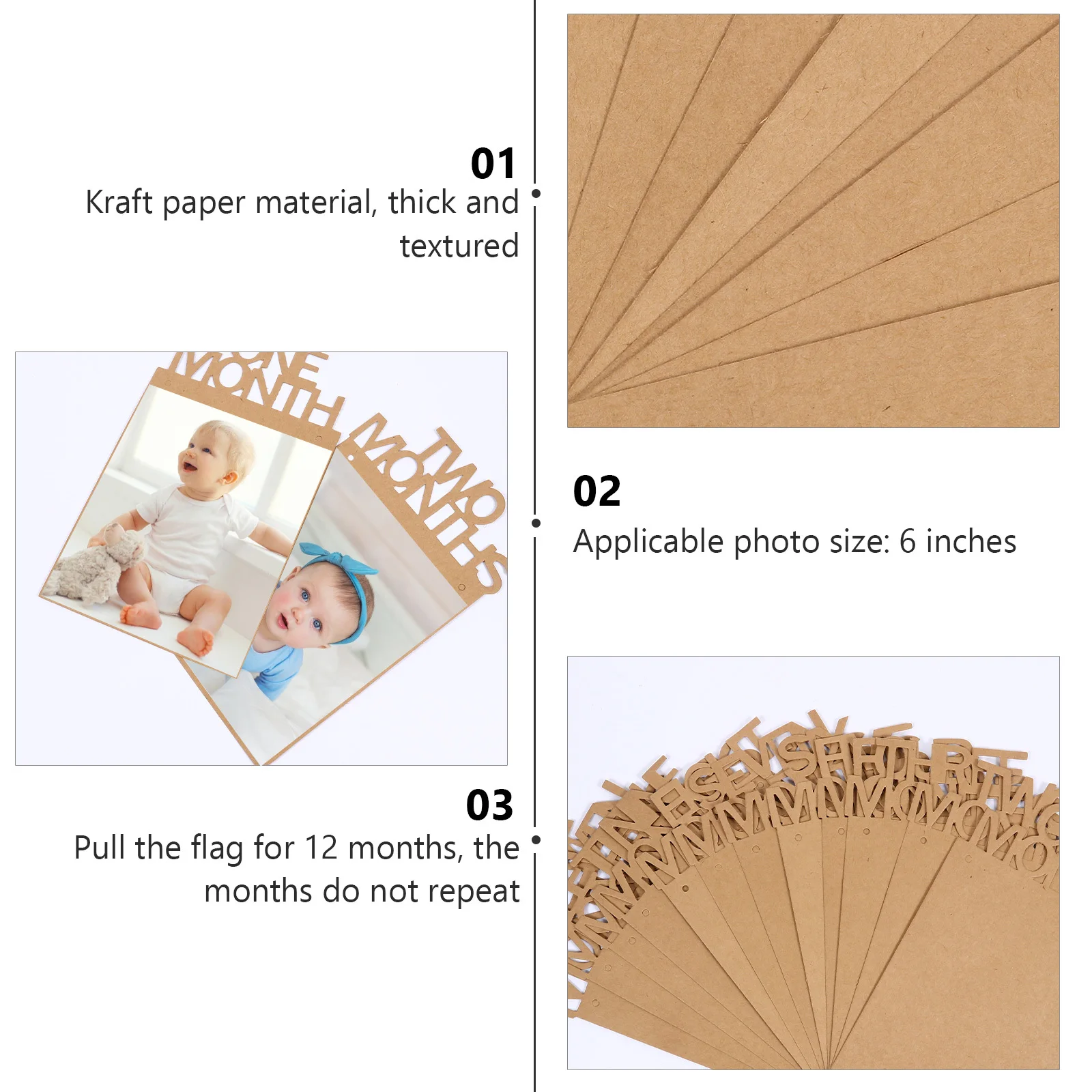 1 conjunto de 12 meses de bebê primeiro ano moldura de foto bunting papel kraft pendurado banner para festa de aniversário decoração guirlanda fácil de usar