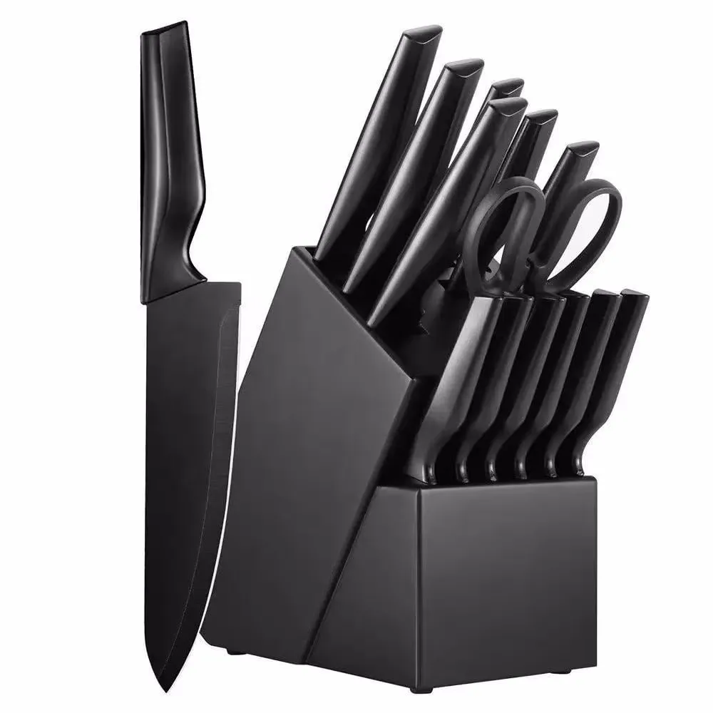 Conjunto de Facas de Cozinha DFITO 15PCS com Bloco Preto, Lâminas Ultra-Afiadas em Aço 3Cr13 para Carne/Fruit/Vegetais, Perfeito para Cozinhar, Presente