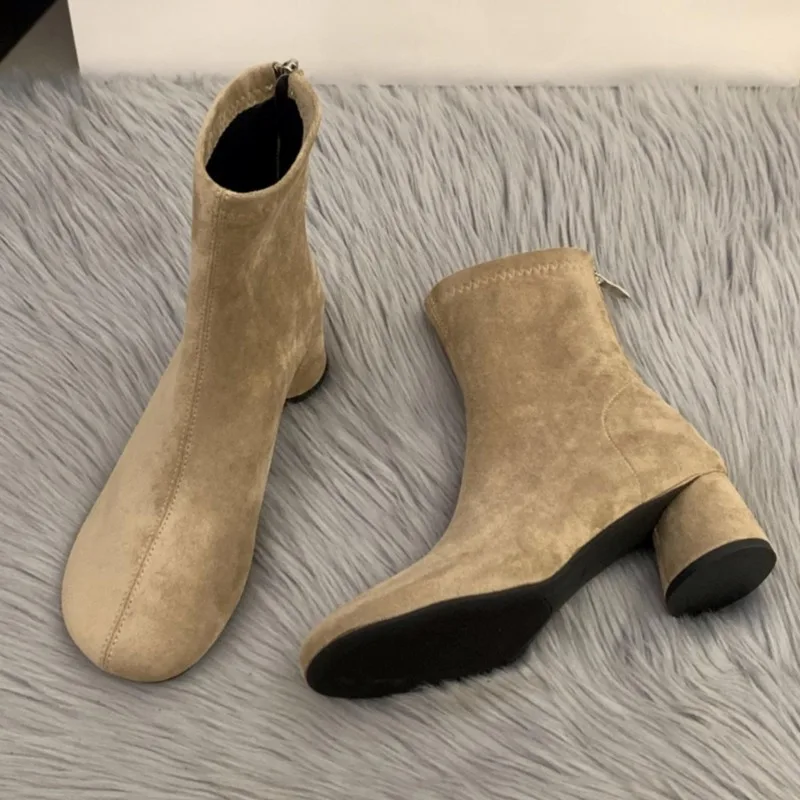 Tamanho 35-42 botas de tornozelo plataforma feminina sexy magro salto alto sapatos de festa feminina dedo do pé redondo zíper macio rebanho outono senhoras calçado