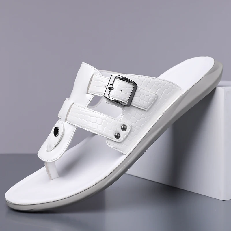 Novo homem chinelos flip flops indoor ao ar livre sandálias de praia super macio slides de fundo antiderrapante grosso sola homem chinelos