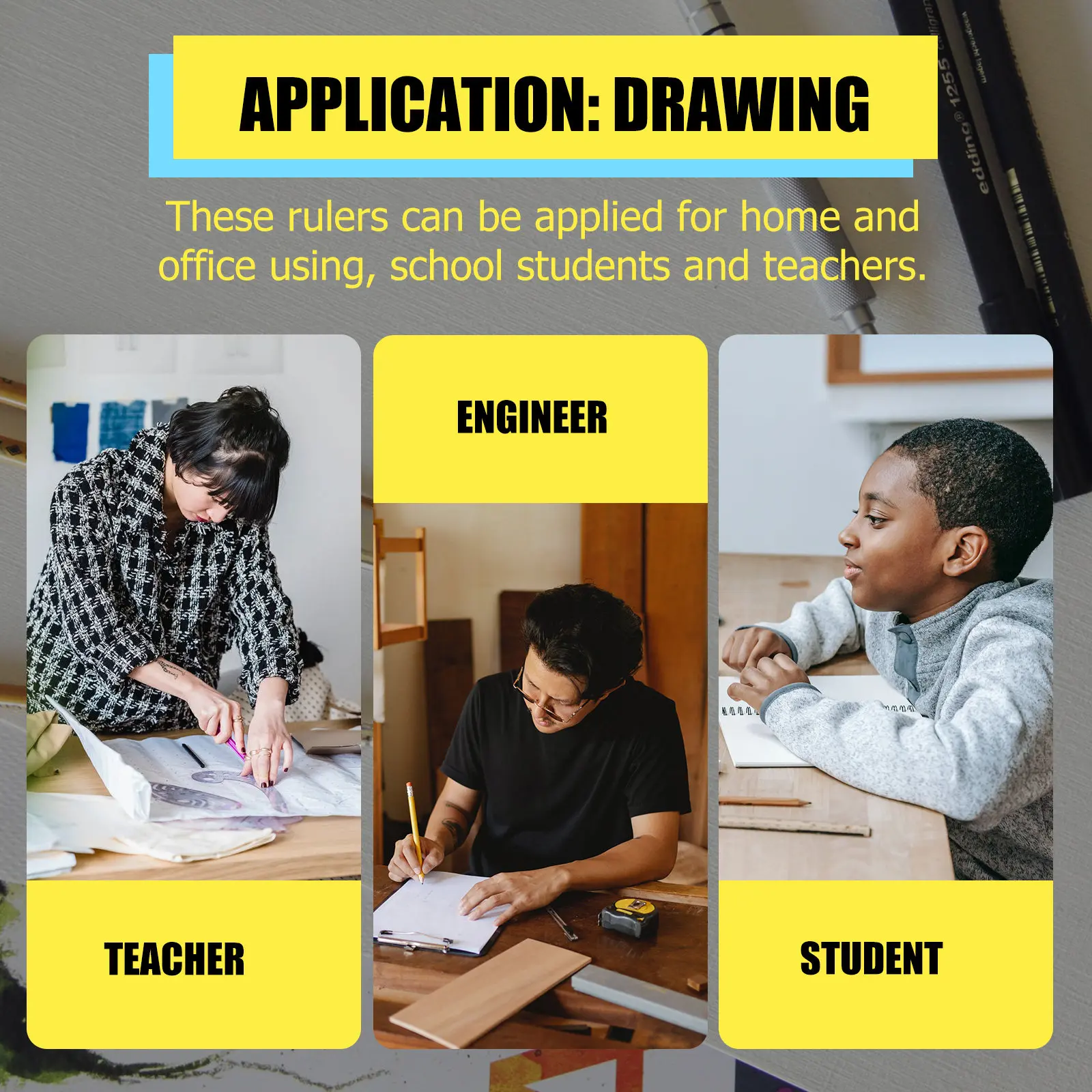 Conjunto de Réguas de Desenho Geométrico Multifuncional para Estudantes, Professores e Artistas com Escalas Precisas