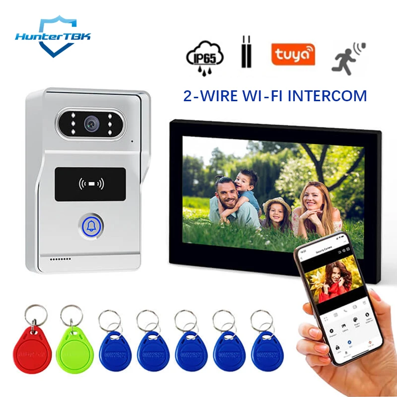 Casa inteligente tuya sem fio wifi vídeo porteiro 1080p vídeo porteiro 7 "tela de toque colorida campainha sistema de vídeo porteiro de dois fios