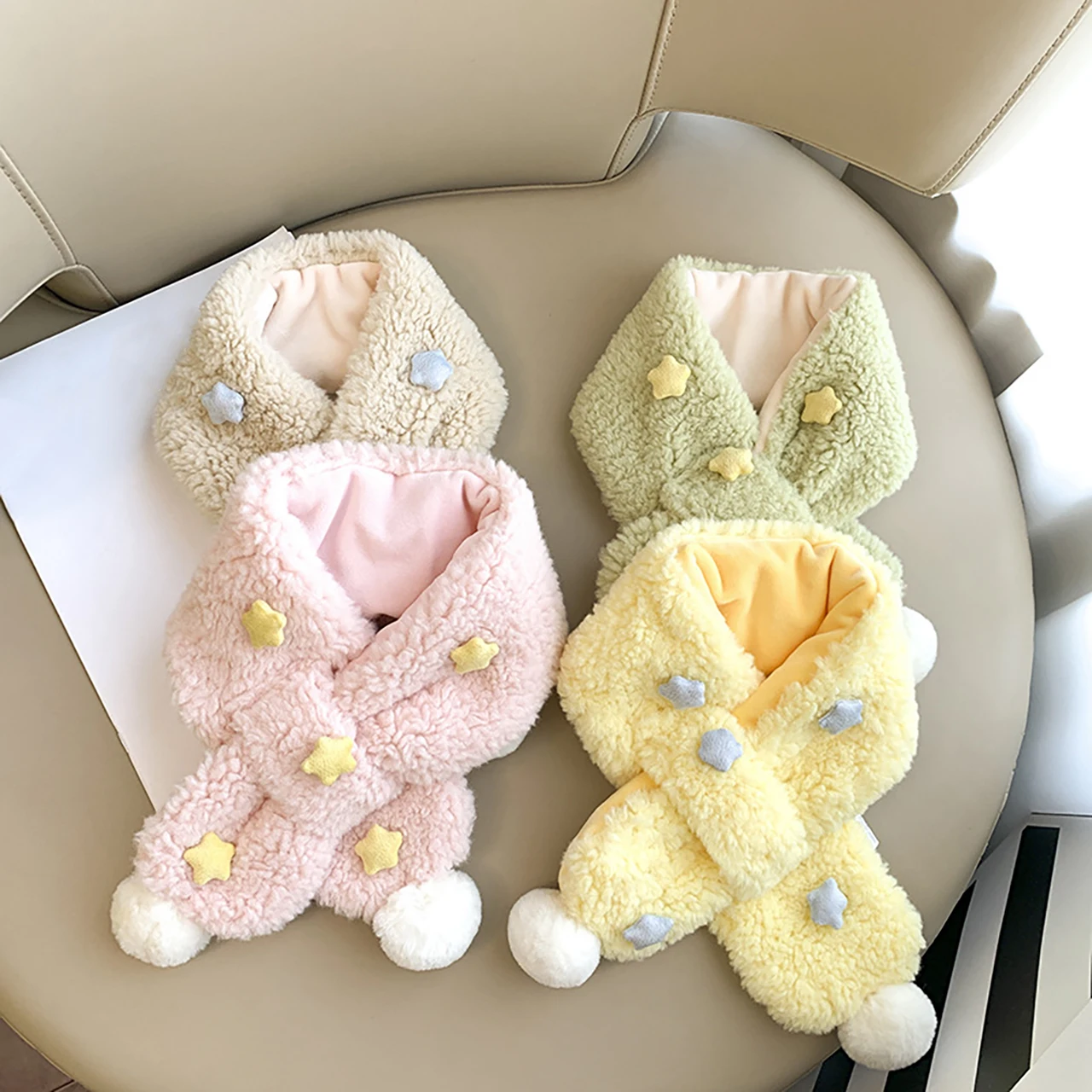 Inverno quente bonito estrela crianças cachecóis de pelúcia crianças anti-frio cruz lenço à prova de vento ao ar livre bebê pescoço capa menina cachecol curto