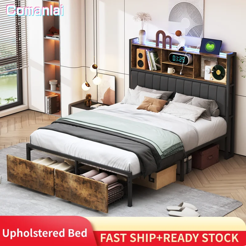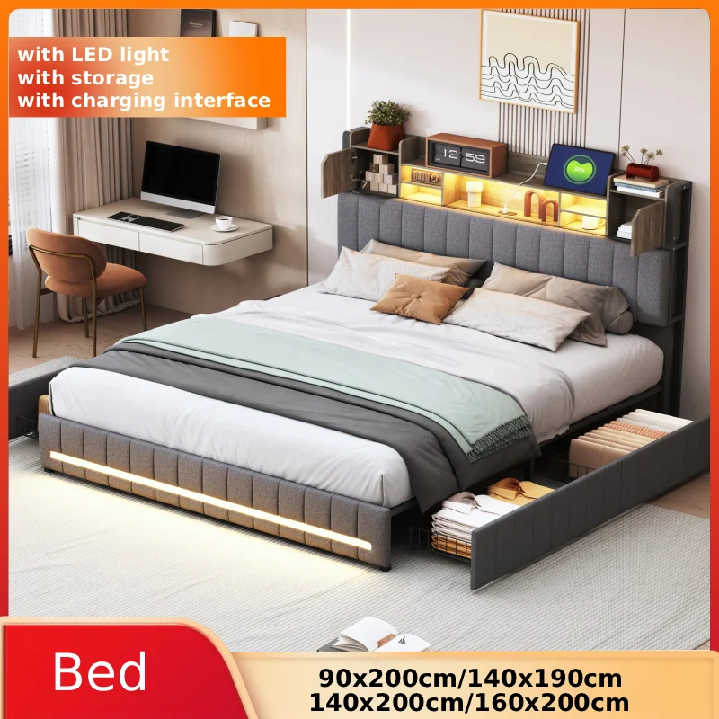 Conjunto de móveis para quarto, cama king size de luxo com tv, cama inteligente moderna com tv na cabeceira, estrutura de cama queen size com tv embutida
