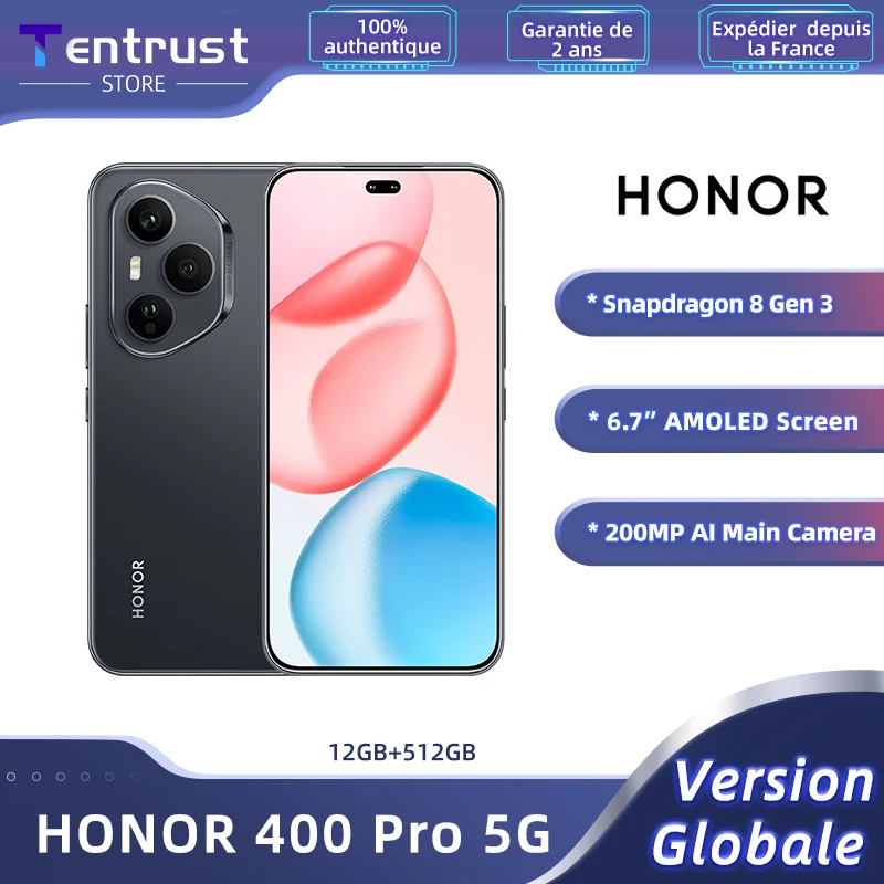 Versão global honor 400 pro 5g smartphone 200mp ultra-clara ai câmera principal qualcomm snapdragon 8 gen 3 chip 5300mah bateria de carbono de silício 6.7 polegadas display amoled