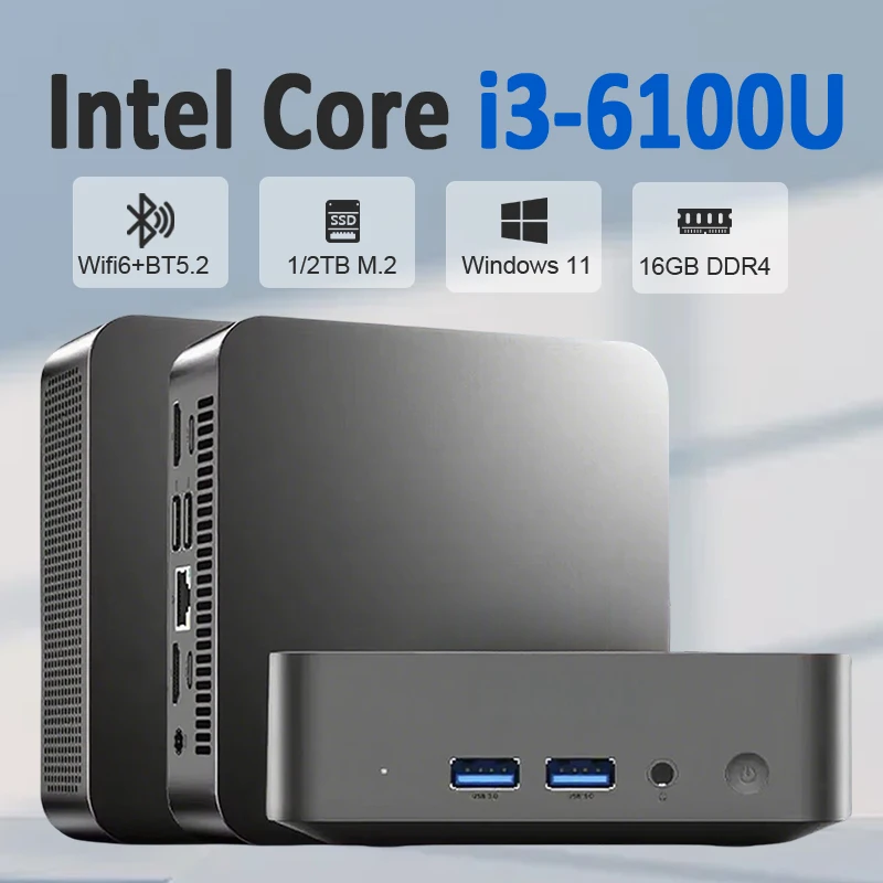 Fuchu 2025 portátil i3 mini computador windows 11 intel core i3 6100u 16gb 1tb computador de jogos usb3.0 wifi 6 mini desktop pc