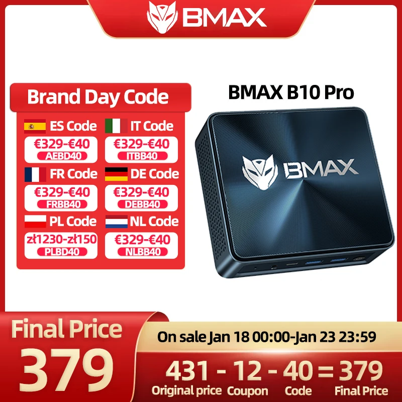 BMAX B10 Pro Mini PC Intel 13a geração i7-13620H 10 núcleos Max 4,9 GHz 24 GB LPDDR5 RAM 1 TB SSD WiFi 6 Bluetooth 5.2