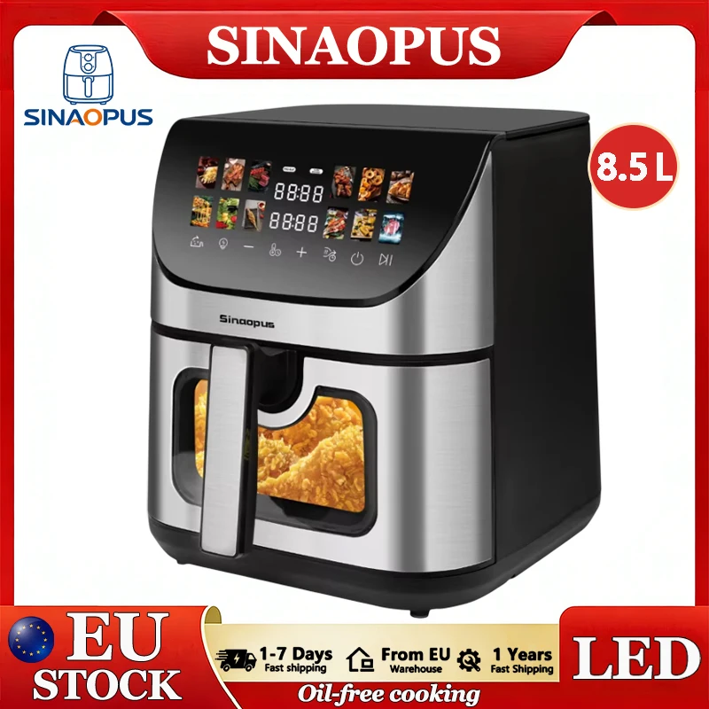 Fritadeira Elétrica Patbrela 7L 1500W Max200 ° Fritadeiras Elétricas com 85% Menos Óleo, Economia de Energia e Tempo, com 8 Predefinições e Janela de Visualização Fácil