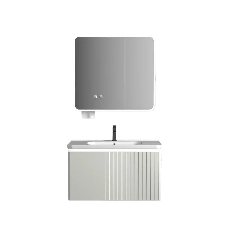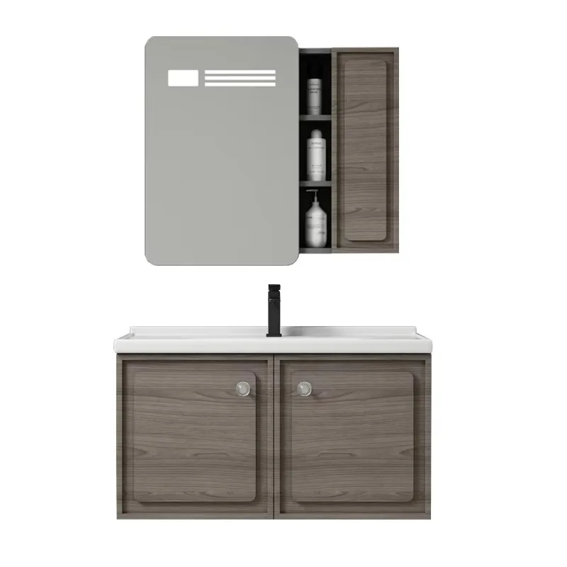 Móveis de banheiro modernos com armazenamento de bacia única, montagem na parede, cinza escuro, pintado, armário de banheiro de madeira com espelho