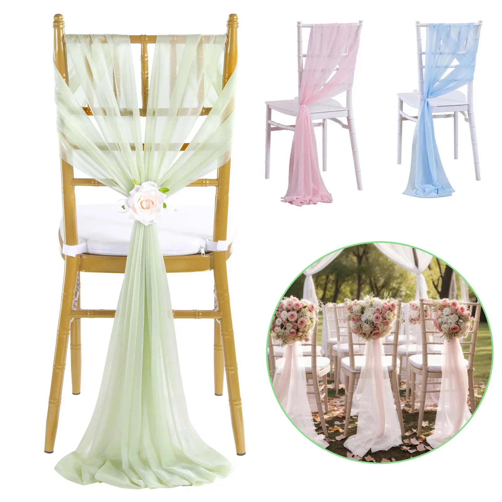Faixa de cadeira de chiffon 20*275cm, capa traseira de cadeira de casamento, fita, eventos de recepção, banquetes, hotel, evento, decoração de capa de cadeira