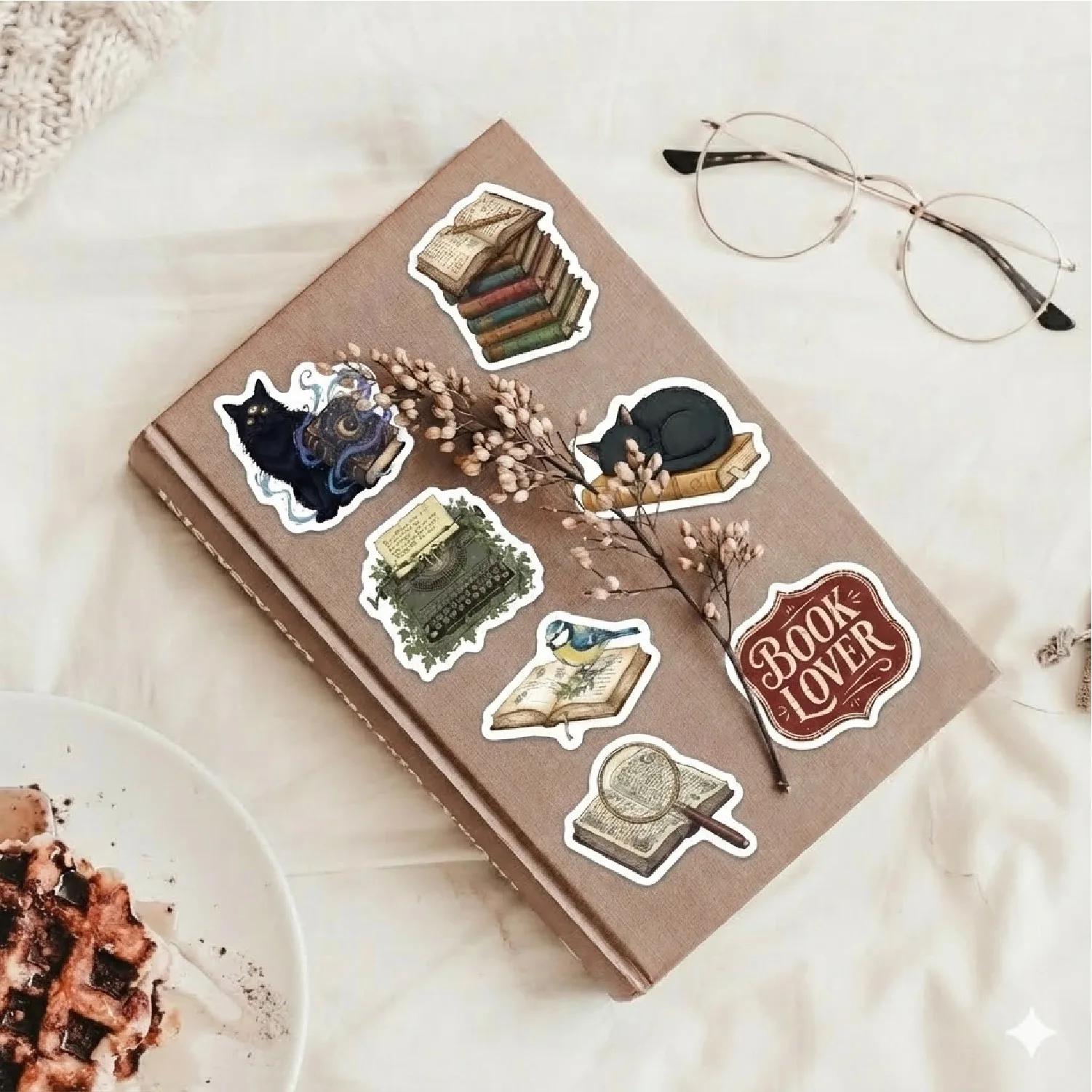 Pacote de 100 Adesivos Vintage para Amantes de Livros, Decalques para Celular, Laptop, Bagagem, Skate, Guitarras, Decoração à Prova d'Água para Diário, Presente