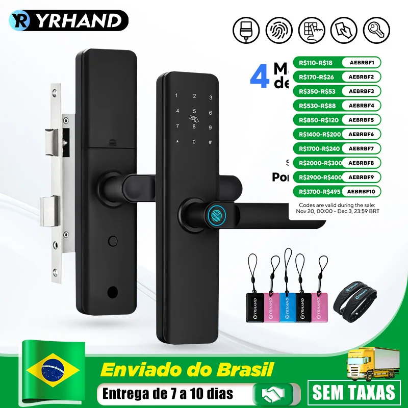 Fechadura eletrônica inteligente para porta, com impressão digital biométrica, cartão inteligente, senha, desbloqueio, usb, sem aplicativo, bloqueio de carga de emergência para casa