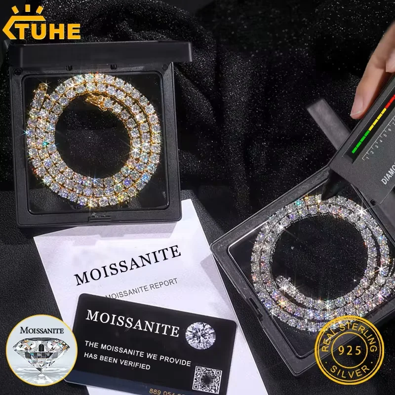 Tuhe unissex moissanite tênis s925 colar vvs1 moissanite corrente de tênis s925 prata para homens mulheres presente passar diamantes teste