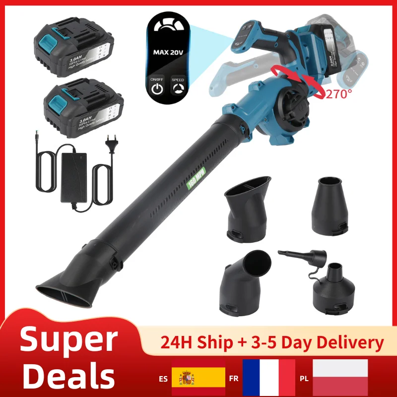 Gismo 300000 Sopradores turbo elétricos sem escova rpm, ventilador a jato 400 m/s, soprador de folhas portátil, soprador de poeira para makita, pinos de bateria de 18v
