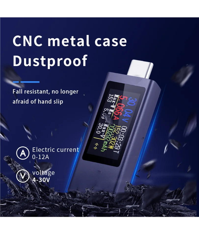 Testador de Energia Tipo C Medidor de Tensão e Corrente Testador de Carregador USB Voltmeter com Tela Colorida para Carregamento Rápido de Telefone e Laptop PD QC