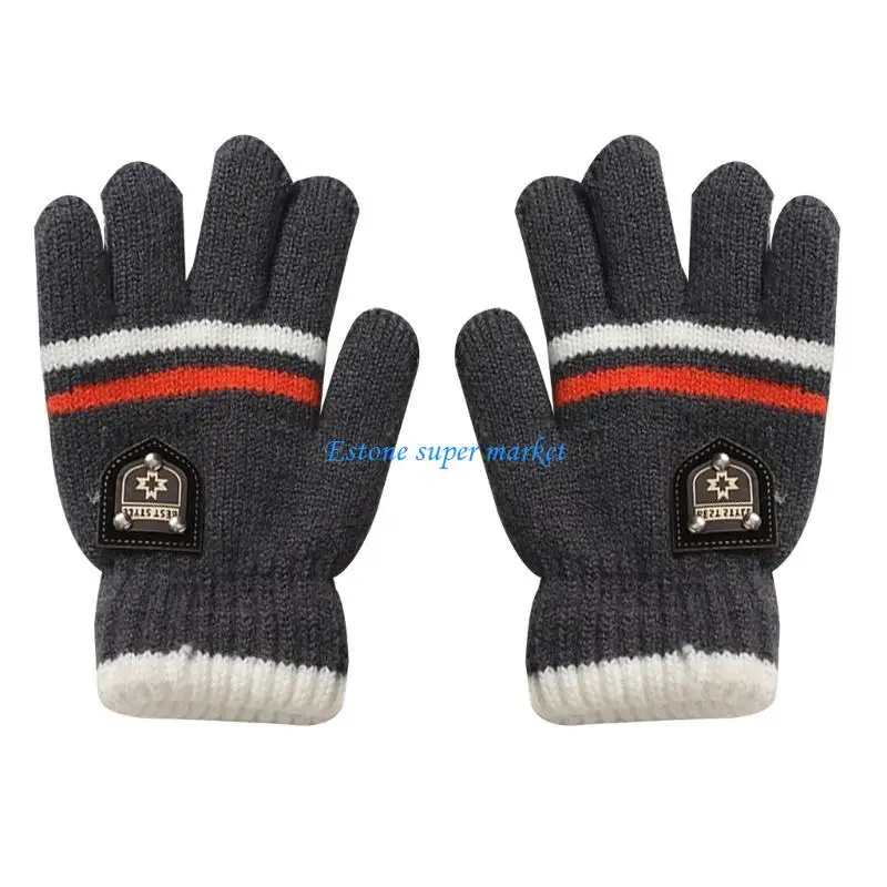 581F Luvas inverno para meninos e meninas com dedos inteiros, luvas quentes malha para crianças 5 a 10 anos