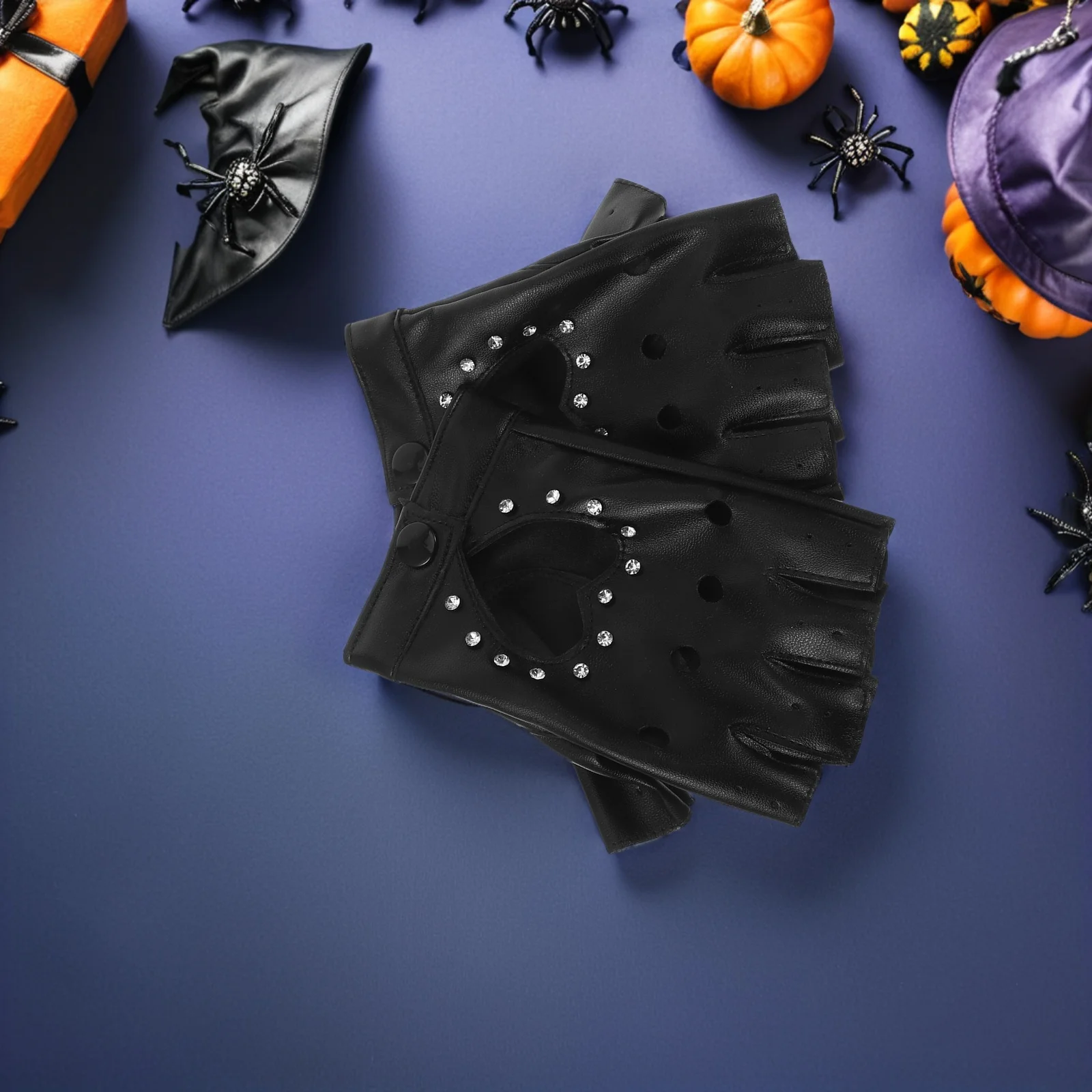 Luvas de dança infantil: luvas pretas sem dedos para crianças, recorte de coração, design brilhante, fantasia pu para performance de festa de halloween