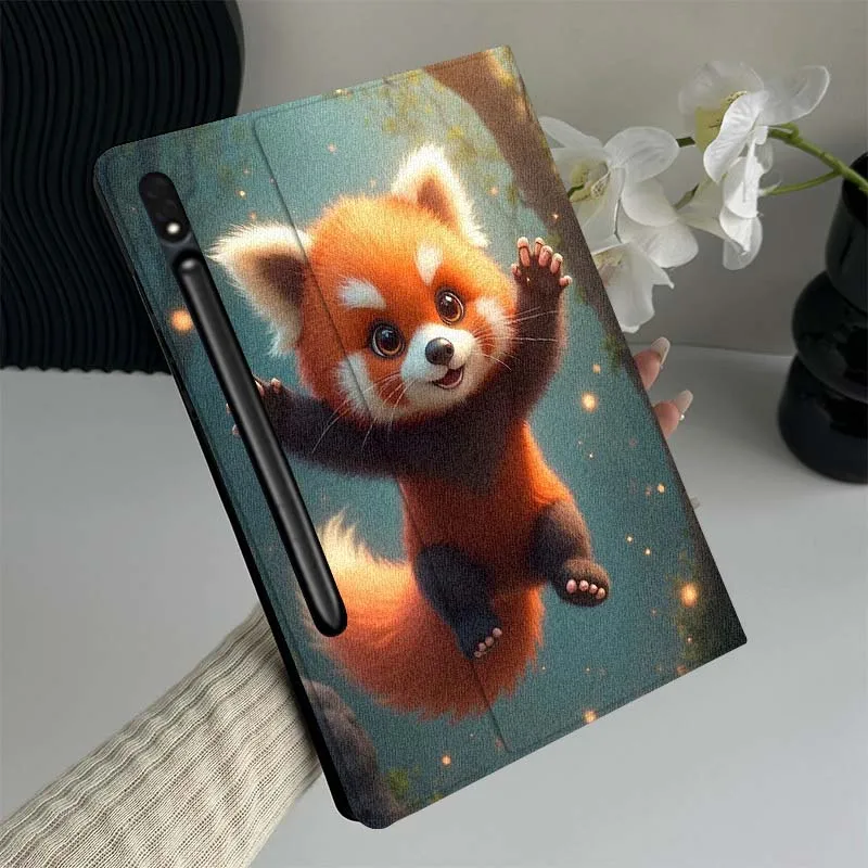 Capa de Tablet Criativa e Fofa com Panda Vermelho para Samsung Galaxy Tab S10 S9 S8 S7 Lite FE Plus, Resistente a Arranhões, com Compartimento para Caneta, Presente