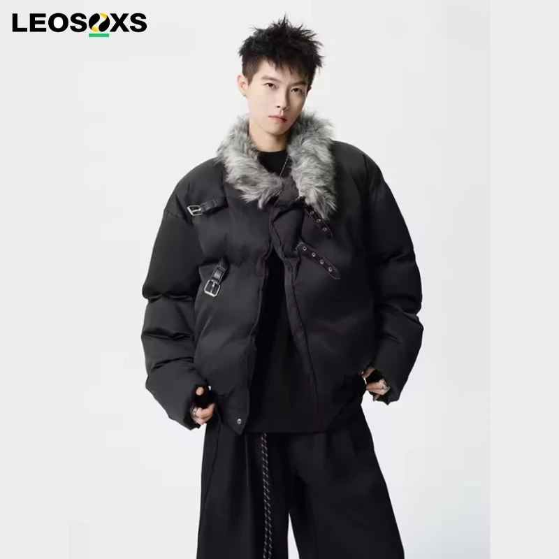 Nova jaqueta masculina acolchoada de algodão casual com gola alta quente para outono e inverno, casaco masculino à prova d'água com zíper hip-hop de rua