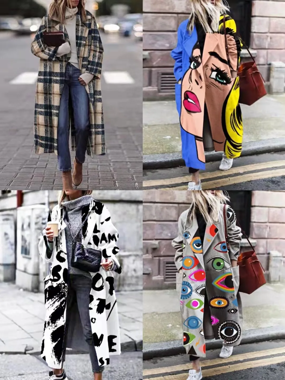 2025 inverno nova moda commuter novo casaco de gola de manga longa impresso casaco de lã