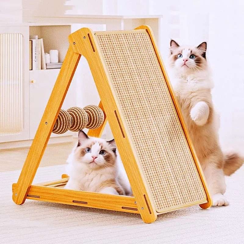 Cama de madeira Cat Scratcher Shaped Lounge, 3 em 1 Coçar Almofadas, Raspador de unhas, Mat Training, Grinding Claw Toy, Cat Scratch Board