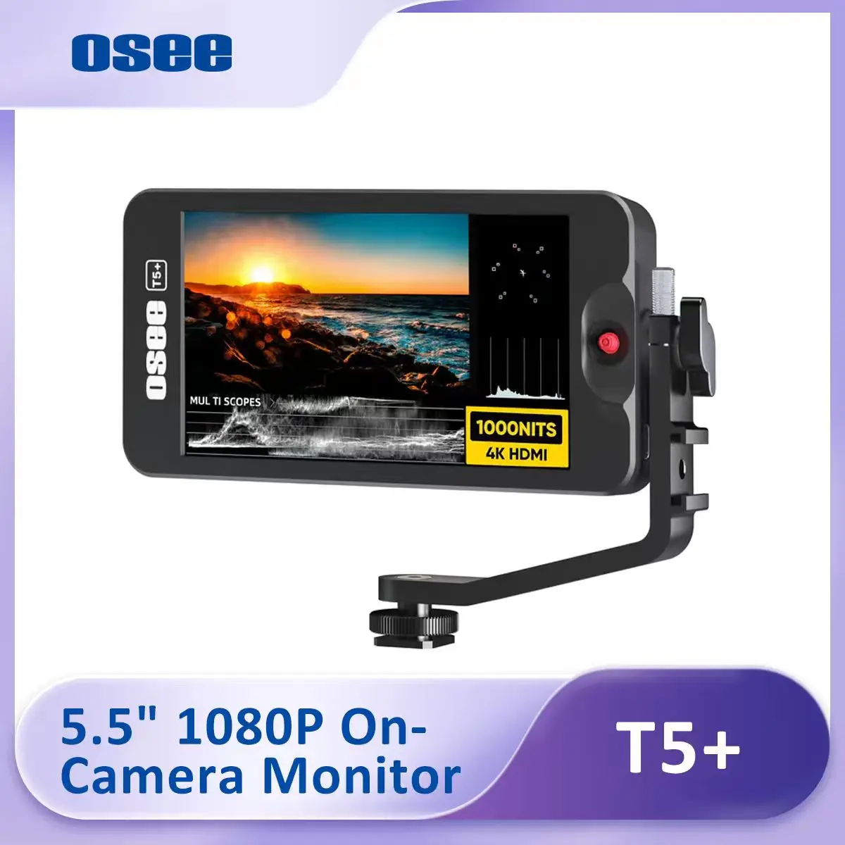Monitor de Câmera Osee T5+ de 5,5 Polegadas 1000nits 4K HDMI HDR com Assistência de Foco 3D LUT e 8 MySets