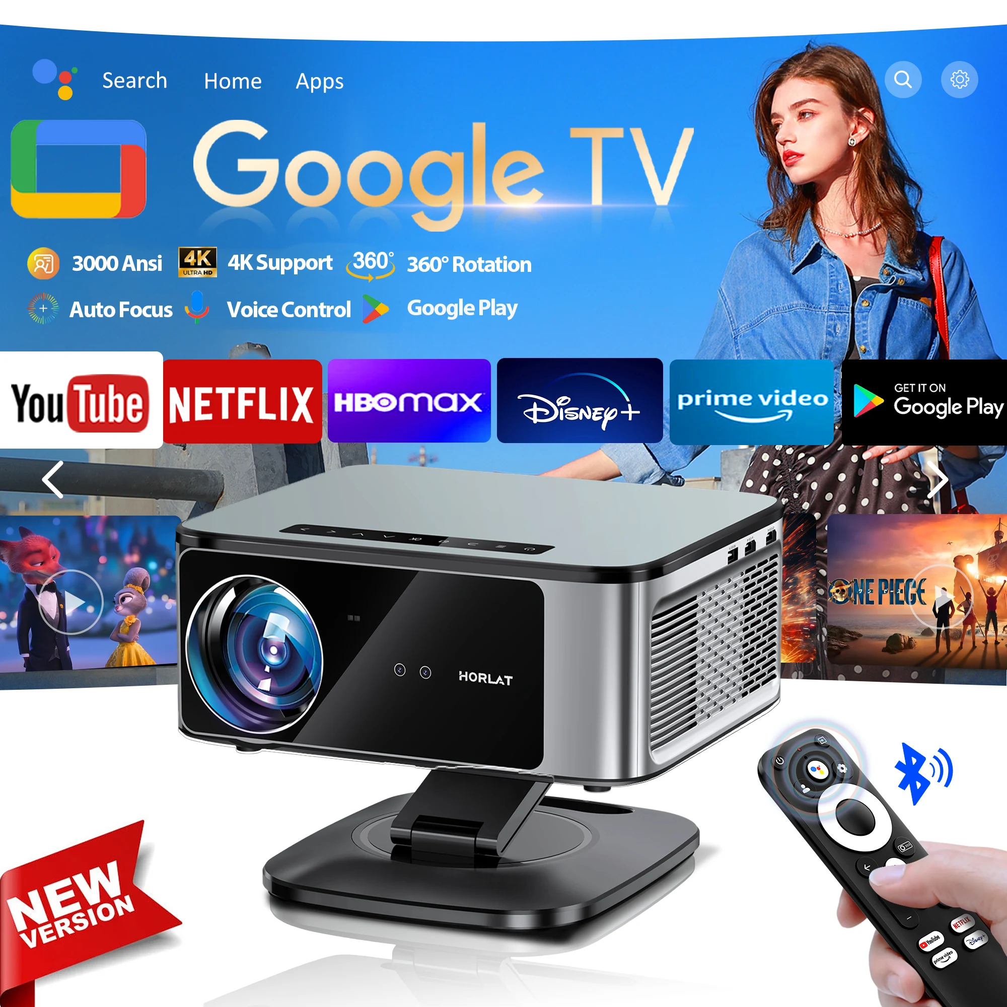 LynCast 4K X3AQ Projetor 500ANSI Nativo 1080P Foco Automático Android 11 BT5.4 WIFI6 Home Theater Portátil