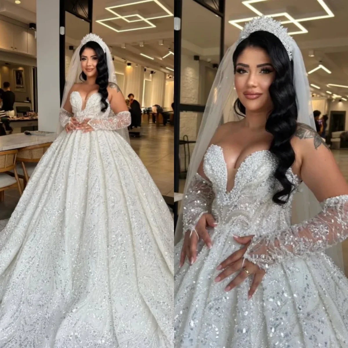 Personalizado africano elegante babados sereia vestido de casamento 2025 novo grosso cristal frisado sonho manga vestido de casamento de alta qualidade