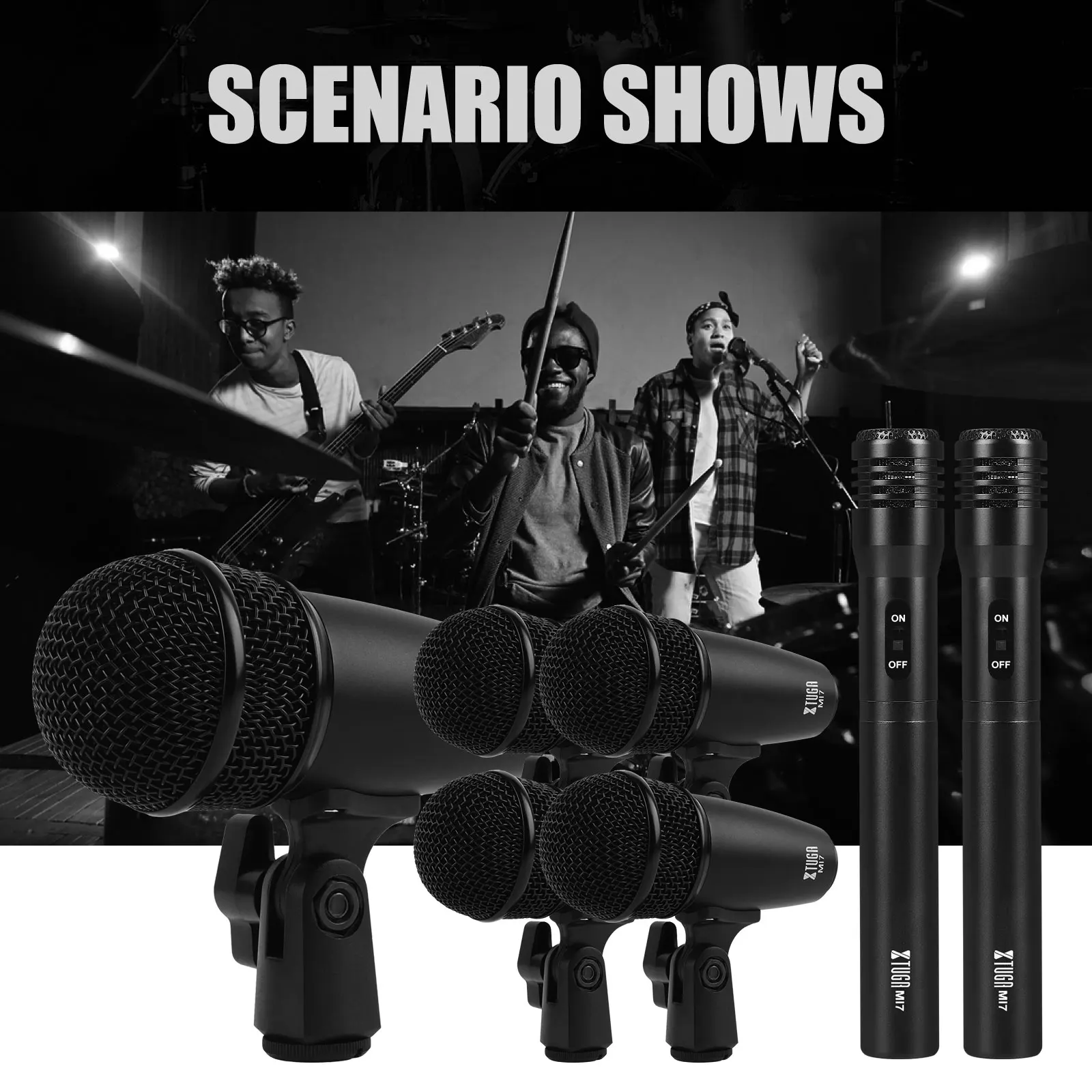 Kit de microfone dinâmico com fio de metal, 7 unidades, adequado para gravação ao vivo, apresentações em palco, microfone para instrumentos musicais