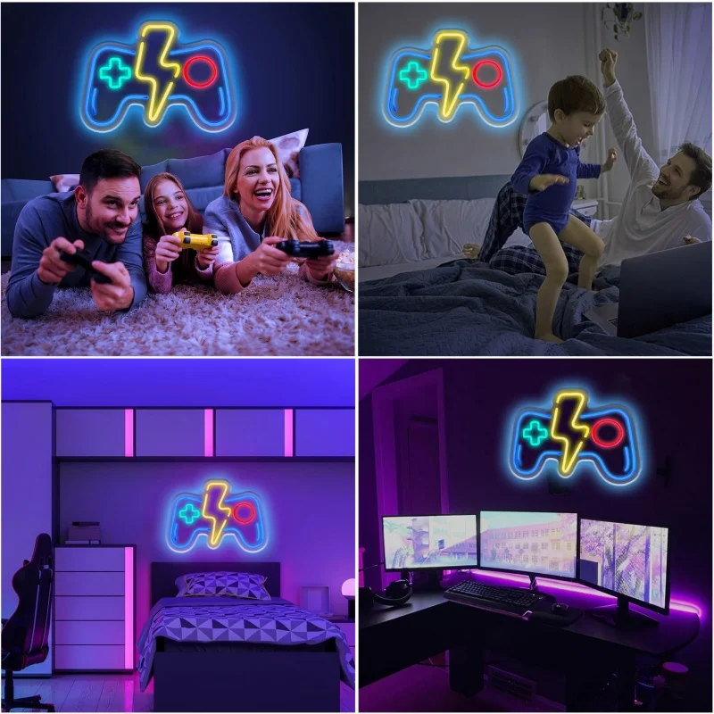 Jogo sinal de néon gamepad controlador sinais de néon luzes de parede de jogos decoração para sala de jogos luzes crianças quarto festa decoração lâmpada