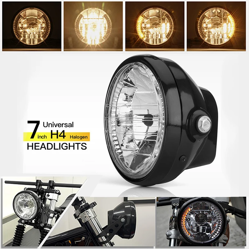 Farol redondo de motocicleta led de 7 polegadas com carcaça e suporte de montagem, drl e feixe baixo ultrabrilhante e feixe alto adequado para a maioria das motocicletas