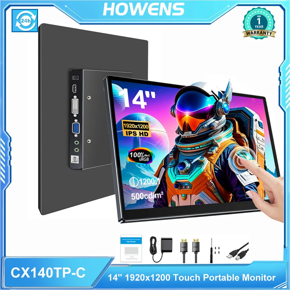 Monitor Portátil HOWENS de 14 polegadas 1920x1200 com Tela Sensível ao Toque IPS, Display Externo USB-C HDMI para Celular, Laptop, PC, Carro e Sistemas DIY