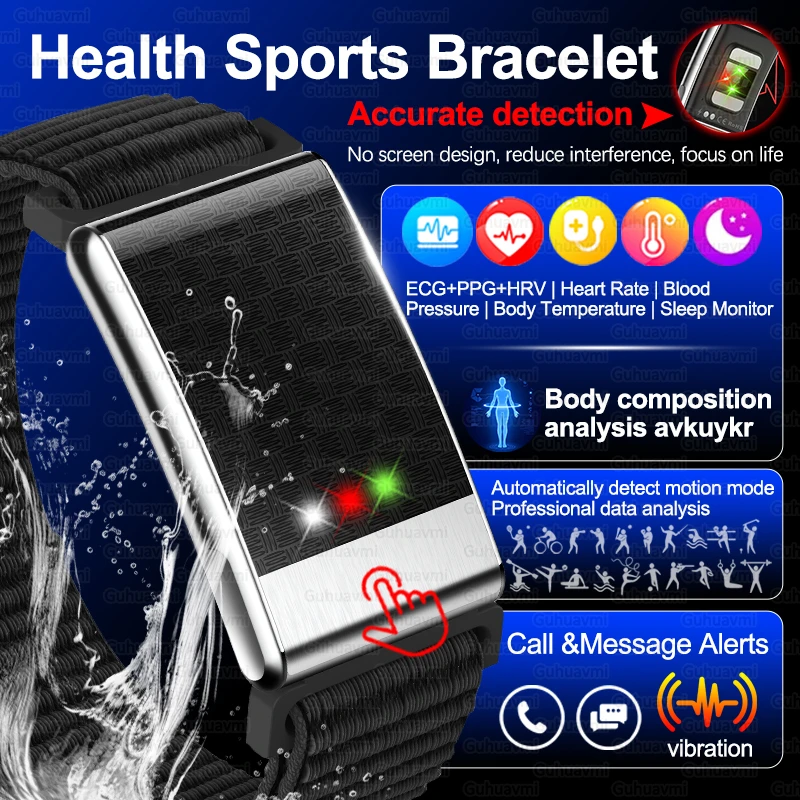 Novo sem tela pulseira de saúde preciso freqüência cardíaca pressão arterial ecg monitor lembrete chamada relógio inteligente esporte banda rastreador fitness