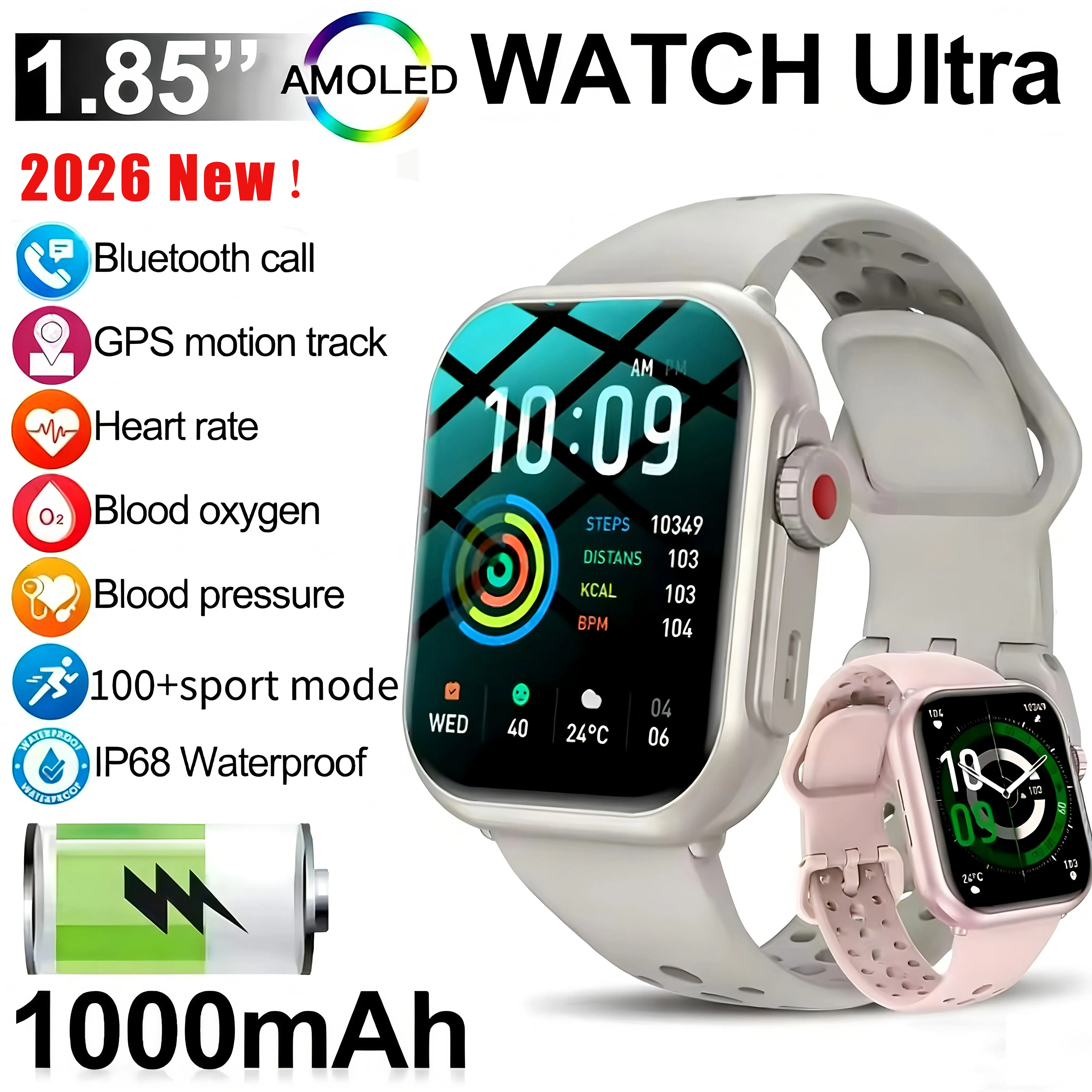 2025 novo relógio inteligente masculino feminino 1.85-Polegada hd amoled tela de toque completa ip68 à prova dip68 água bluetooth chamada smartwatch homem