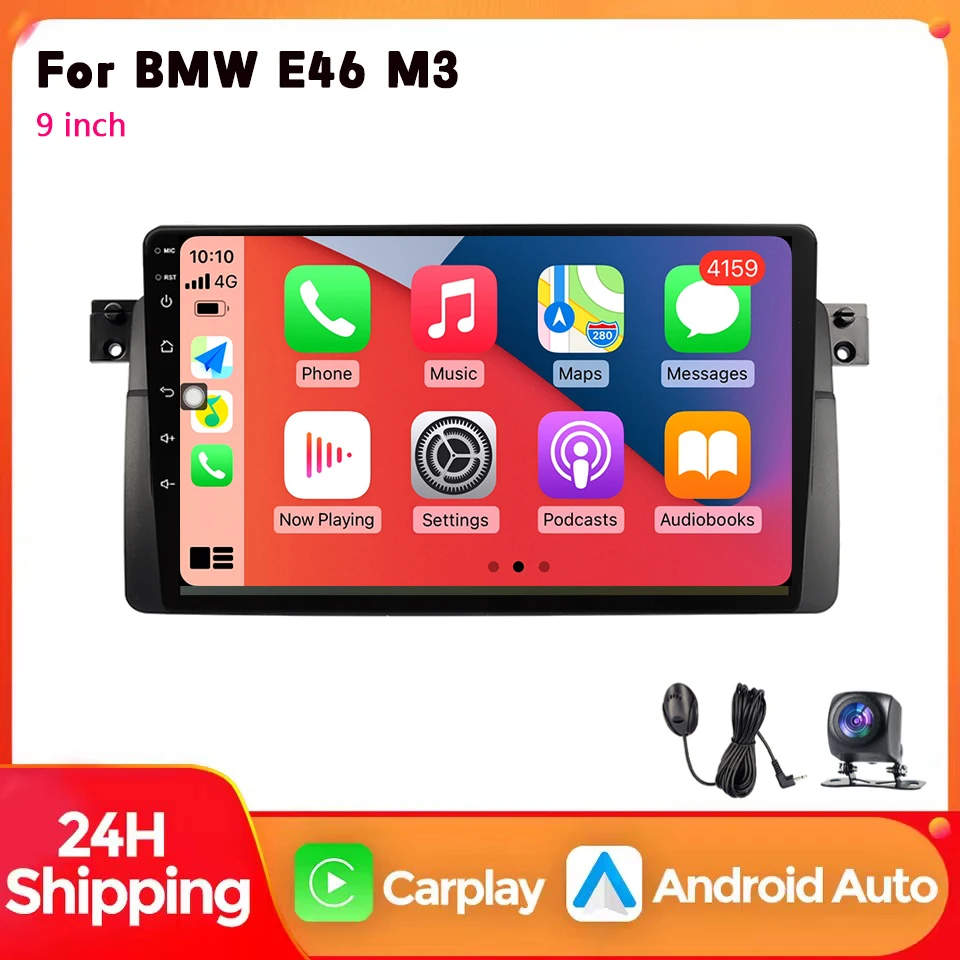 Rádio multimídia do carro de android 14 para bmw e46 1998-2006 carplay 4g wifi gps rds dvd autoradio estéreo dsp