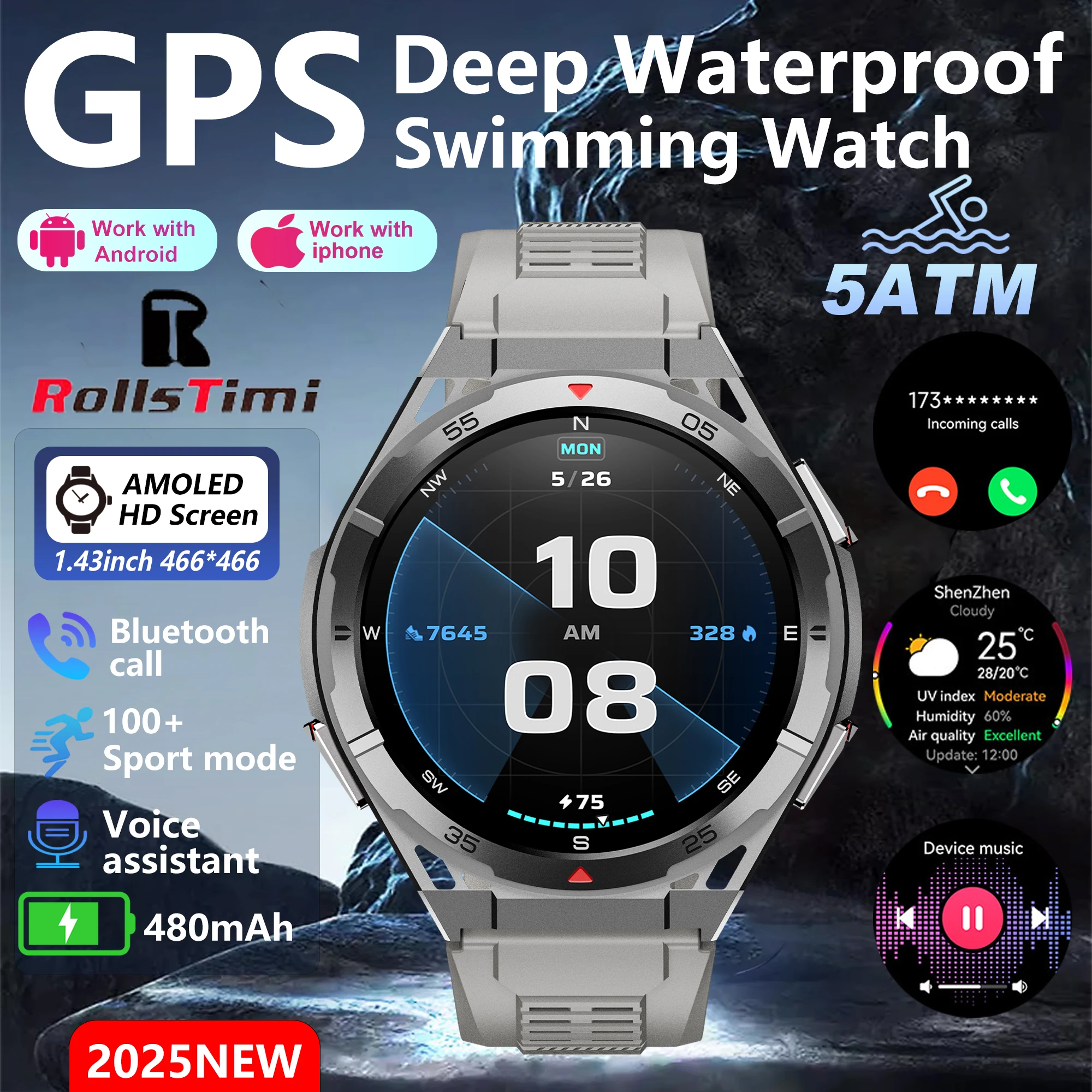 2025 novo gps relógio inteligente ao ar livre esporte embutido gps smartwatch rastreador de fitness bluetooth chamada relógio para xiaomi huawei iphone