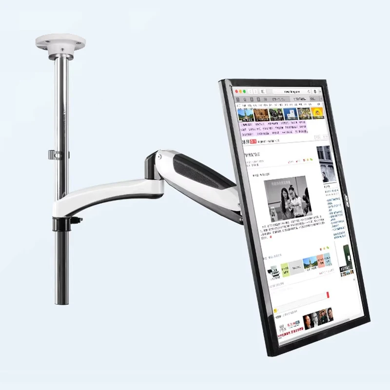 DL-GMC-112 alumínio 27 polegada 0-8kg 360 girar suporte do monitor lcd instalar suporte de tela de teto mola a gás duplo braço longo montagem