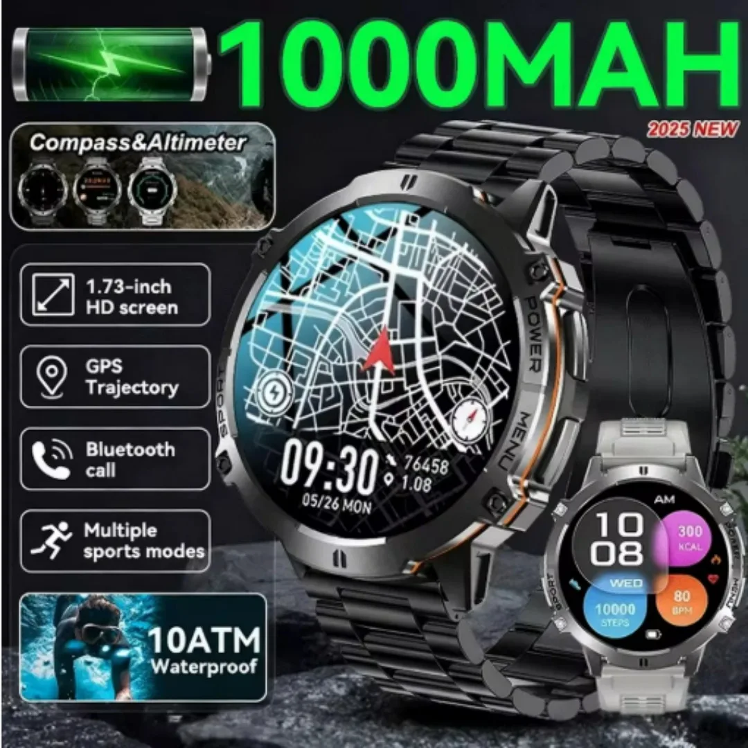 Novo Smartwatch Esportivo Xiaomi com Bateria de 1000mAh, Tela AMOLED, Resistência à Água 10ATM, Bússola, Altímetro, Smartwatch Militar T-Rex3 para Homens