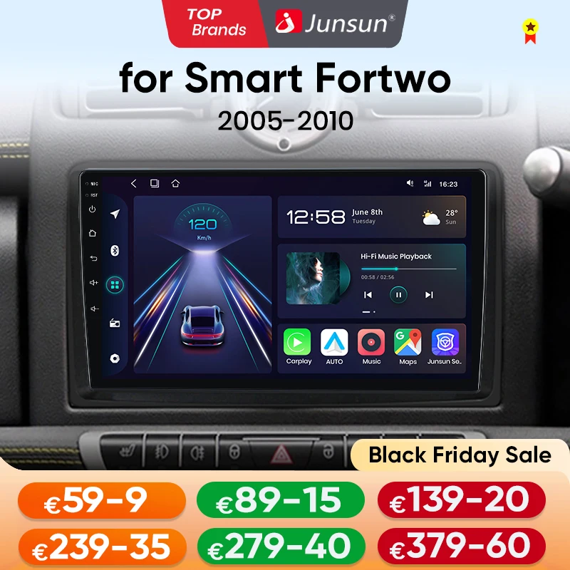 Junsun android14 rádio do carro para merced benz smart fortwo 451 2005-2010 estéreo para apple sem fio carplay multimídia gps fm rds 4g