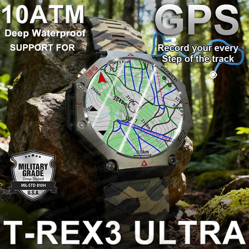 2026 T-REX3 mapa gps adulto relógio inteligente lanterna forte 10atm à prova dwaterproof água embutido banda dupla gnss militar esportes smartwatch masculino