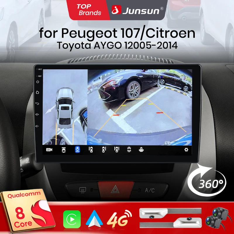 Junsun qualcomm 8 núcleos 360 câmera sem fio carplay android auto rádio do carro para ford fiesta mk vi 5 mk5 2002-2008 gps