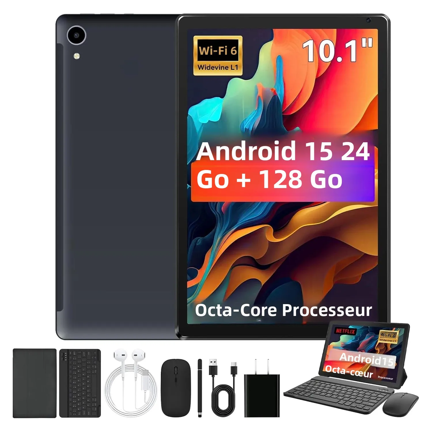 Tablet Android 15 URAO de 10 Polegadas, 8 Núcleos, 24GB+128GB, Expansão de 1TB, WiFi6, Câmeras 5MP+8MP, Conjunto com Caneta Stylus, Teclado, Mouse e Fone de Ouvido