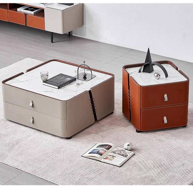 Móveis bonitos de luxo brilhante pedra sinterizada mesa de centro quadrada superfície de mármore mesa de centro moderna concisa mesa de tv