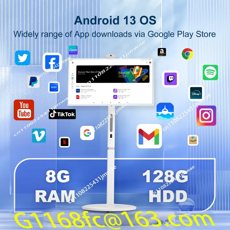 32 Polegada tela de toque tv inteligente 8 núcleos cpu android os 8 + 128gb bateria embutida com câmera inteligente rotação tv portátil