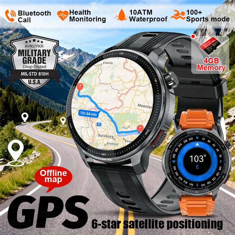4gb de memória gps bússola esportes relógio inteligente mapas offline gorila tela vidro smartwatch masculino 100m nadar à prova dwaterproof água esportes pulseira