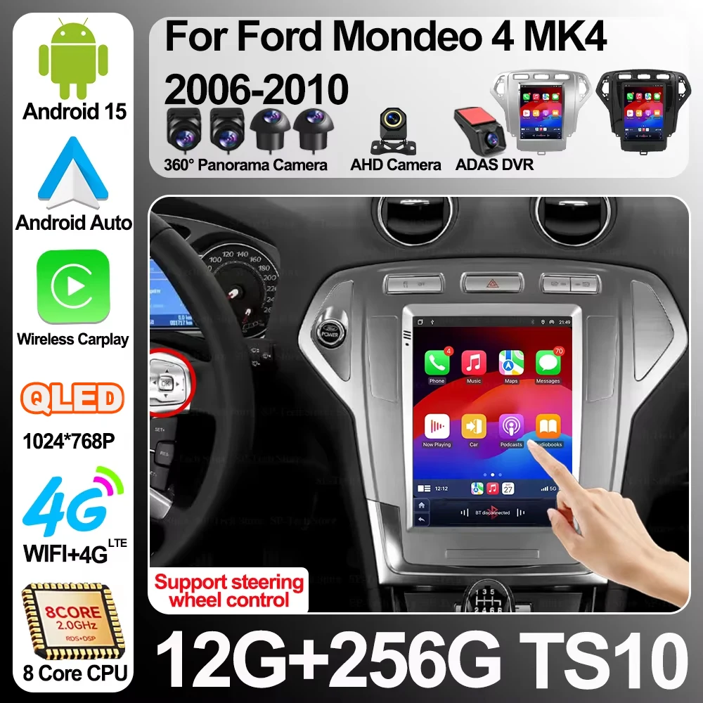Central Multimídia Automotiva 2 Din de 9,7 polegadas com Android 15 para Ford Mondeo 4 MK4 2006-2010, Rádio, Navegação GPS, Estéreo, 5G, Carplay, Wi-Fi e Tela.