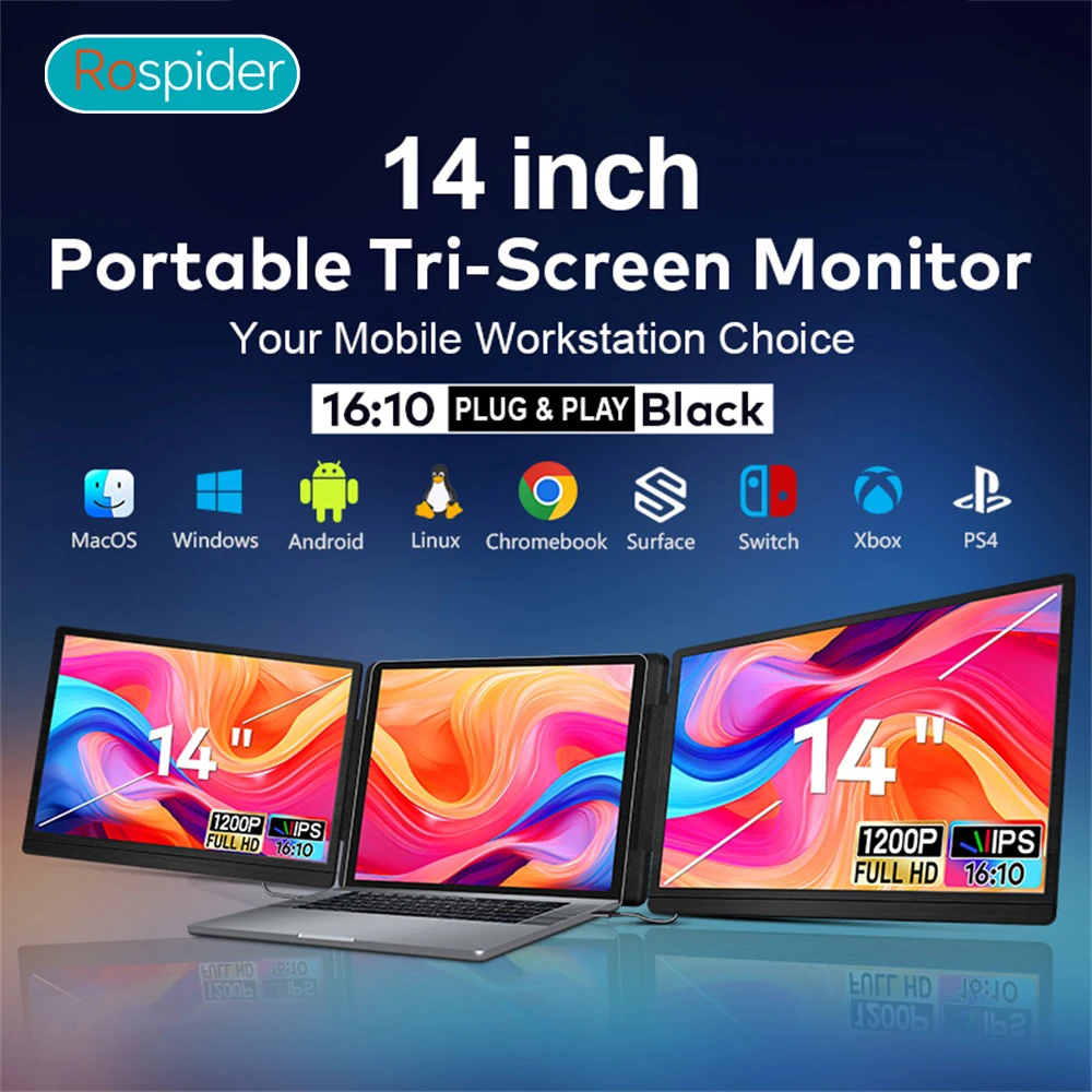 Eletrônicos de consumo 14 Polegada 3 telas extensor portátil monitor portátil plug and play lcd 1080p alta qualidade ips 120hz tipo-c